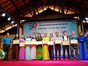 Cũng tại Chương trình này, Công đoàn ngành Giáo dục tỉnh đã tổ giao lưu văn nghệ giữa các cán bộ công đoàn cơ sở với 20 tiết mục văn nghệ đến từ 20 đội chơi; chủ đề ca ngợi Đảng, Bác Hồ, ca ngợi quê hương đất nước, tình yêu với biển – đảo, ca ngợi về giai cấp công nhân, Công đoàn Việt Nam. Kết thúc Chương trình giao lưu, Ban Tổ chức đã khen thưởng đối với 10 tiết mục văn nghệ xuất sắc.