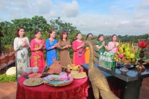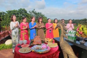 Trước khi vào họp các cổ đông thắp hương tại tượng quốc mẫu âu cơ.