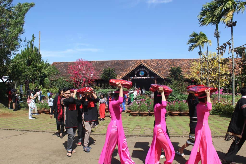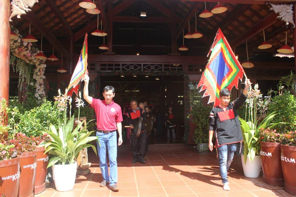 Phần văn nghệ của nhân viên KDL KoTam, cùng các già trong đội nghệ nhân.